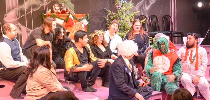 Audience members were treated to the rough and tumble hilarity that has come to mark the Debajehmujig festive season outings, with veteran Debaj thespian Bruce Naokwegijig anchoring the performance as the big green meanie, the varied and talented cast and crew took to the stage to thwart the Grinch through hook, crook and happenstance.