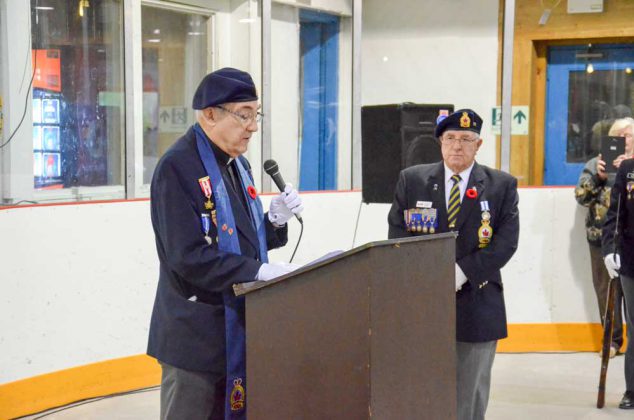 “I welcome and thank all of you for your attendance here today, to pay your respects to all those men and women who have served in time of war and in peace. Each year, Branch 177 Little Current and Branch 514 Western Manitoulin alternate hosting this special day to pay homage to the men and women who served in our country’s forces and those of our allies,” said Comrade Eaton. “Through their courage and sacrifice, these men and women have helped to ensure that we live in freedom and peace, while also fostering the same around the world.”