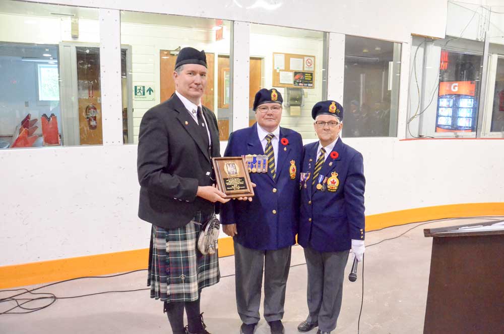 Zone H3 First Deputy Lynne Barron brought greetings on behalf of District H and Zone H3 before the gathering began a traditional Legion opening ceremony including the Last Post, followed by one minute of silence broken by ‘The Lament’ played by Pipe Major Stewart Gagan. An impressive rendition of ‘Rouse’ was then played by bugler Petty Officer Second Class Abbie Harper of the Manitoulin Sea Cadets Corps.
