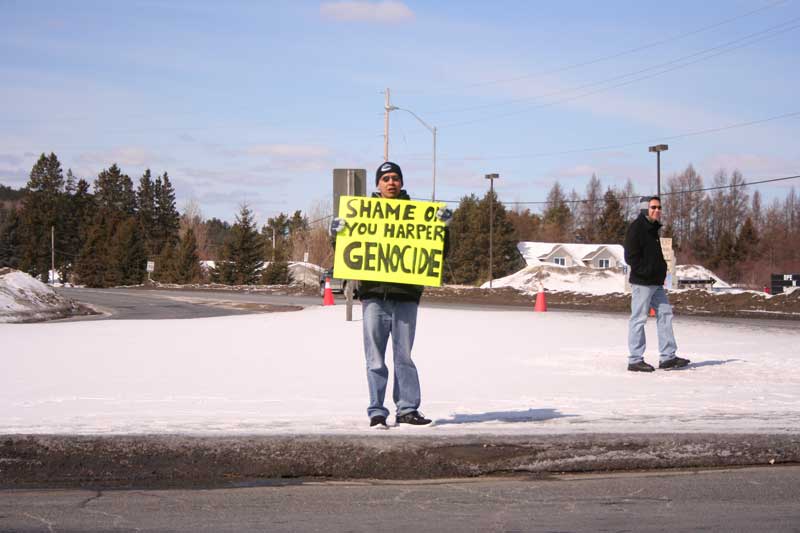 Demonstrators from the United Urban Warrior Society of Ontario and local First Nations gathered at the intersection of Highways 6 and 17 at noon on Friday, March 21 to bring attention to the plight of the families of missing and murdered aboriginal women in Canada.