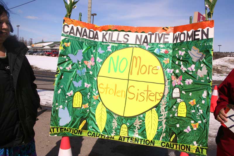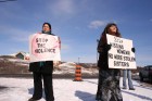 Demonstrators gather at Hwy 6 and 17 intersection to bring attention to missing aboriginal women