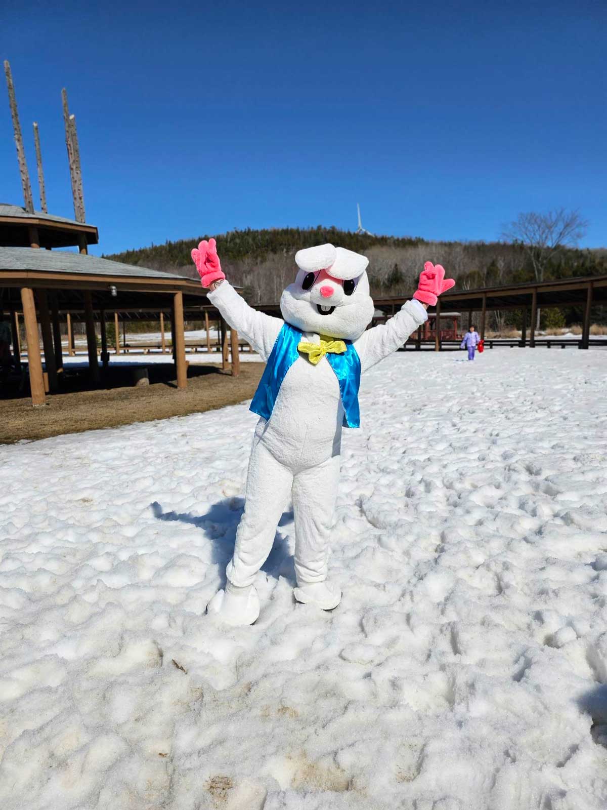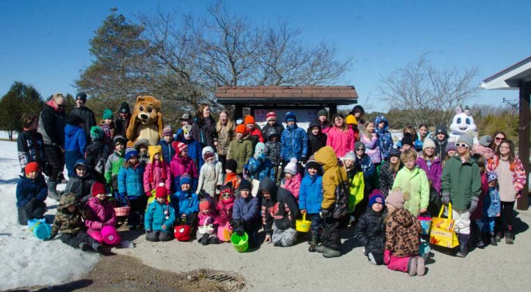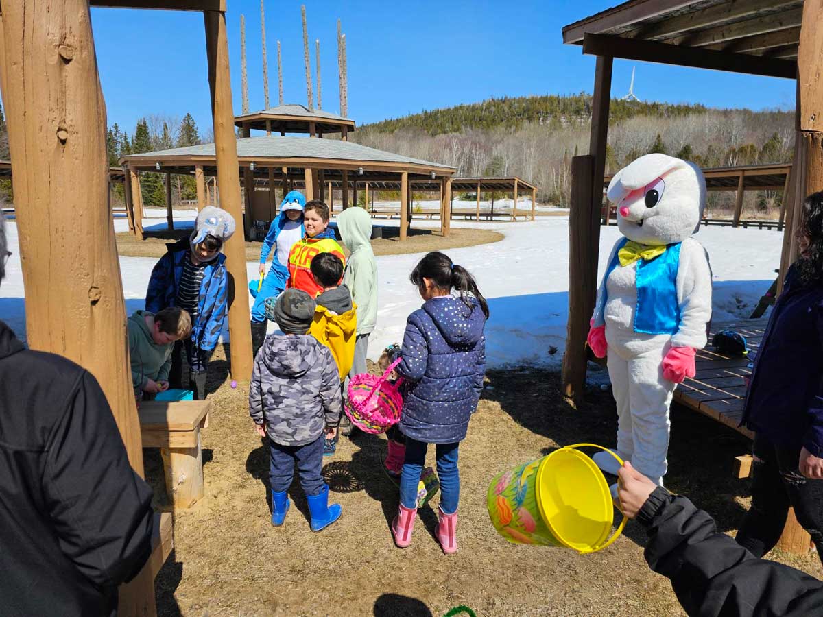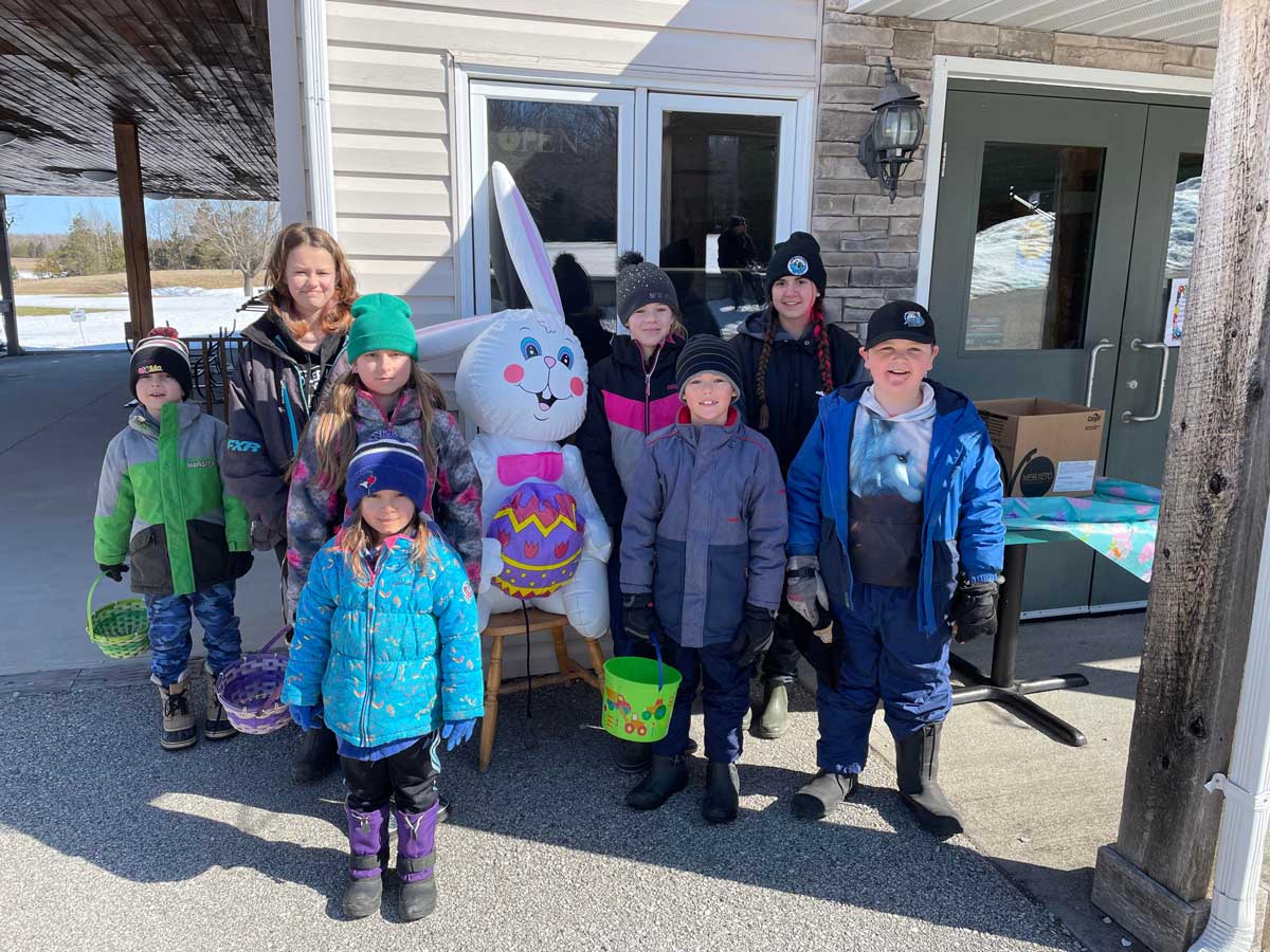 About 120-140 children and their families attended the Easter Egg hunt held at Manitoulin Golf this past Sunday. The event was put on by the Gore Bay recreation committee. Along with the Easter Bunny, the Gore Bear was on hand for photographs with the youngsters. Volunteers helped to hide over 8,000 treats among the three age categories.This was the Gore Bay community’s first recent Easter egg hunt.