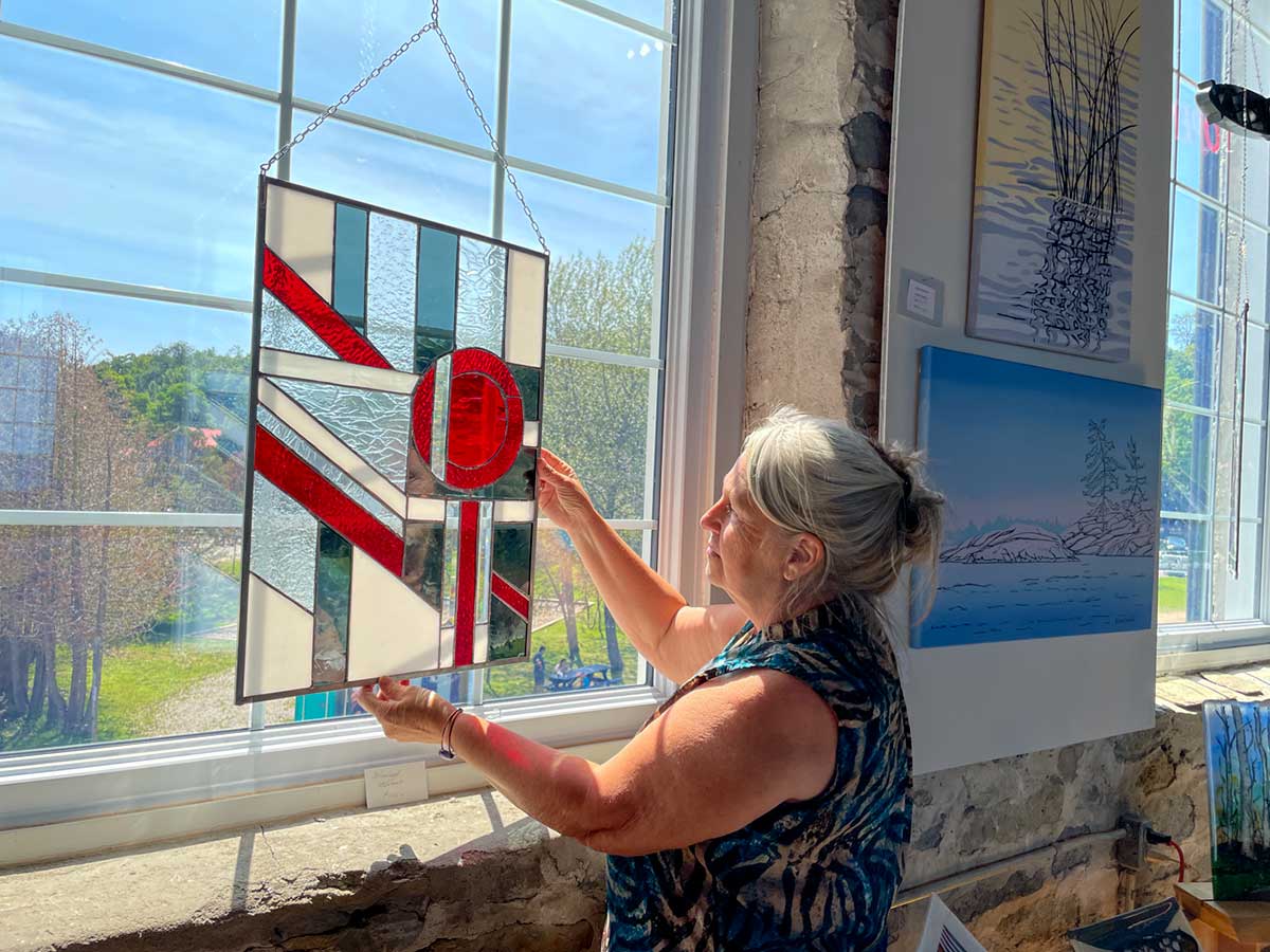 Ms. Edwards is a glass artist. She creates everything from small jewellery, stained glass works and fused glass. The latter technique uses pieces of coloured glass and transforms them using a layering method which is then kiln fired to create plates, wall hangings, ornaments and other beautiful pieces of art.