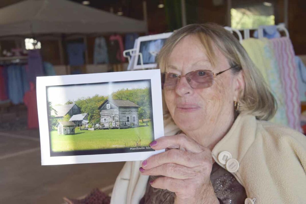 TEHKUMMAH—Evelyn Russell-Baehr’s Island roots run deep. The Expositor ran into Ms. Russell-Baehr at Bluegrass in the Country where she was a vendor, selling her wares as Simple Pleasures. One of the greeting cards Ms. Russell-Baehr was selling features a view of a heritage log homestead.
