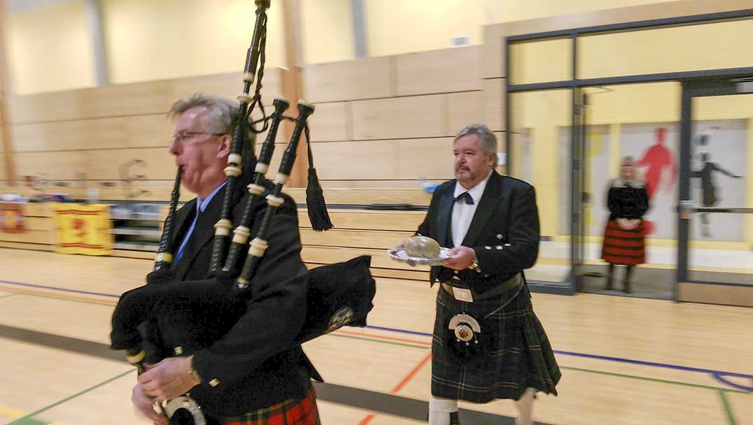 Mr. Andrews delivered the ‘Address to the Haggis’ in Gaelic rhyme, followed by Pastor Irwin Thompson (himself well and fully bedecked in traditional Scottish regalia) reciting the ‘Selkirk Grace.’