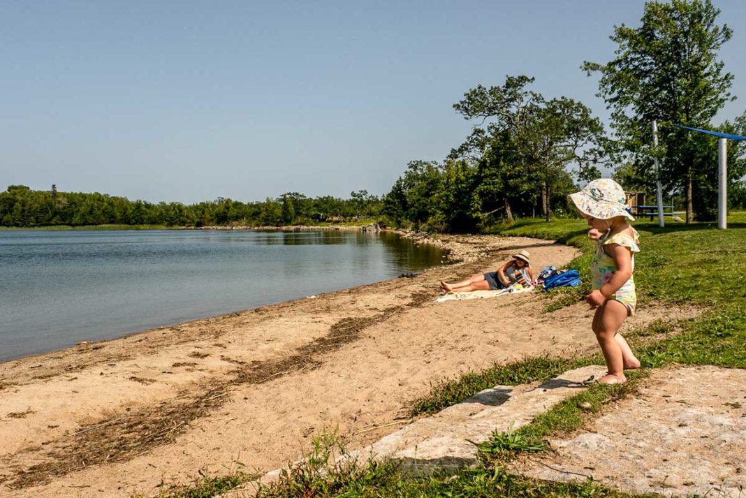 It is generally quiet here but can fill up on those hot afternoons; out on the dock a young lad dives over and over into the cool, calm water then comes in to hop on his bike to head home, On the sand, Jessica Clements and daughter Charlotte have come from Gore Bay to relax and have fun in this play-perfect place. Having moved with her family from west of Thunder Bay last May, Ms. Clements is rhapsodic about Manitoulin in summer, although, she says, “I love winter! I can’t wait for Manitoulin winter!” To which we say, ‘all in good time, Ms. Clements, all in good time.’