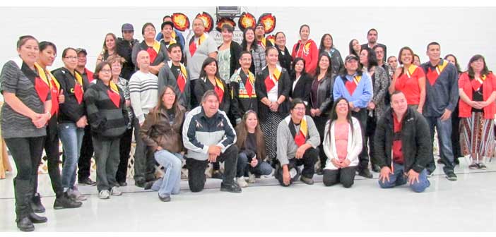 M’CHIGEENG—Fifty-four young men and women graduated from the Kenjgewin Teg Educational Institute’s (KTEI) Anishinabek Identity, Mind and Spirit (AIMS) program and received their diplomas on October 24 at the M’Chigeeng community complex. The event was held not only to honour the graduates but also to celebrate the project’s successes and the impact the courses had on the student’s personal goals and outlook for the future.