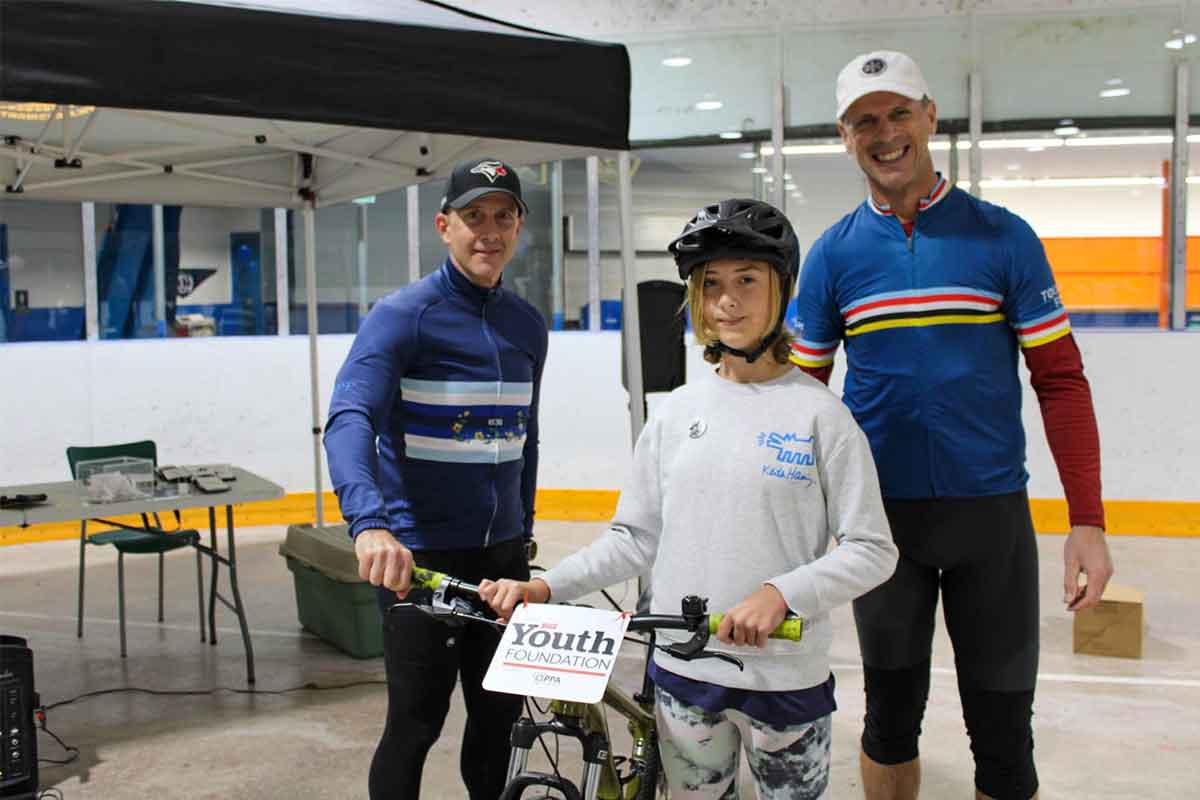 OPP Police Commissioner Tom Carrique, and Adam Belanger, provincial coordinator for youth engagement with the OPP, both participants in the 140 km Tour de Force Heroes in Life Cycling Series that began at 9 that morning, had the honour of presenting the prizes to the kids at the end of the ride and rodeo. They wasted no time in drawing names for the door prizes, of which there was a bike helmet, a bike lock, and several OPP toques. Then came the draw for the $100 gift card for Rylans Clothing won by Tyson O’Brian. There were six bikes to be given away, the recipients already chosen ahead of time by the OPP Youth Foundation, based on certain criteria. “We want them to reach their highest potential,” said Ms. Poredos, of the youth chosen.