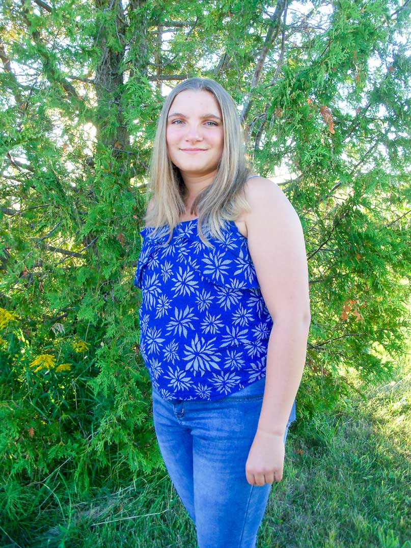 Marena Verboom is 17-years-old and from Providence Bay. She has blonde hair and blue eyes. She is homeschooled and will be finishing high school this fall. She enjoys swimming, reading, volunteering on mission trips, doing things with family and friends and caring for her animals. “My dad, Marius, is my role model because he believes in me, encourages me, and has taught me to work hard and never give up,” said Marena. She said that she loves Manitoulin Island because of its fresh water lakes and wide open spaces that allow her to star gaze. “It would be exciting to win the Ambassador of the Providence Bay Fair,” said Marena. “It would give me the opportunity to build my confidence and an opportunity to share my love of agriculture.” Marena is sponsored by White’s Plumbing.