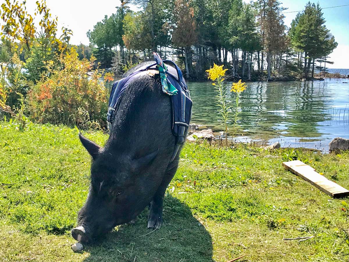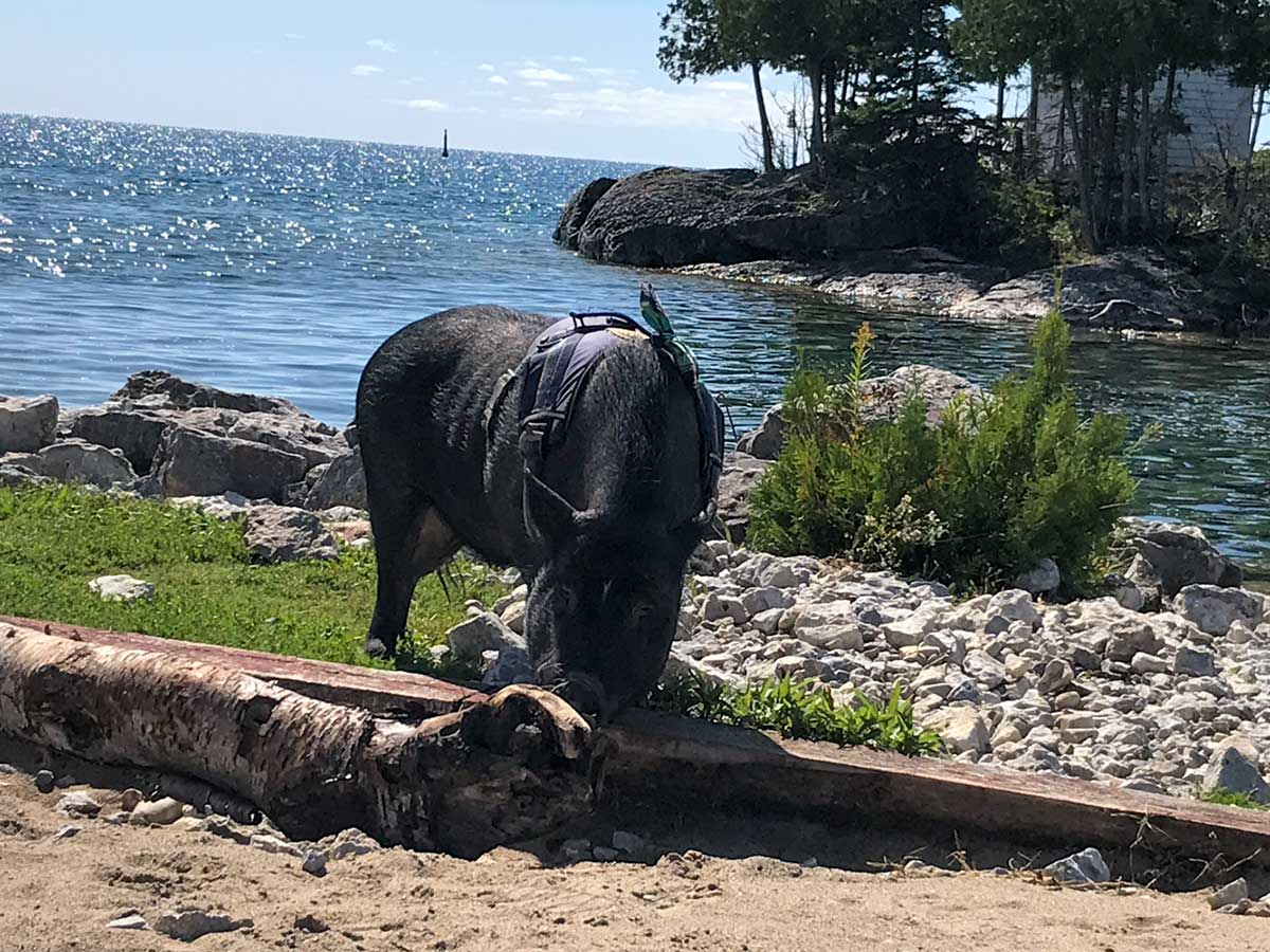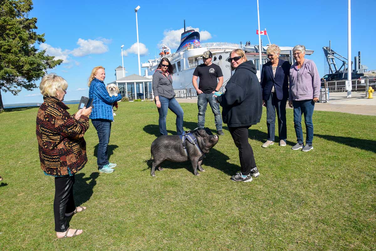 Walter’s return trip was much the same as the trip toward Kitchener—scores of people seeking to introduce themselves and many questions about all things pig. He and Ms. Bolden rode on the outside of the ferry on that trip and enjoyed the scenery, though the vast expanses of Lake Huron were at times unsettling for the three-year-old.