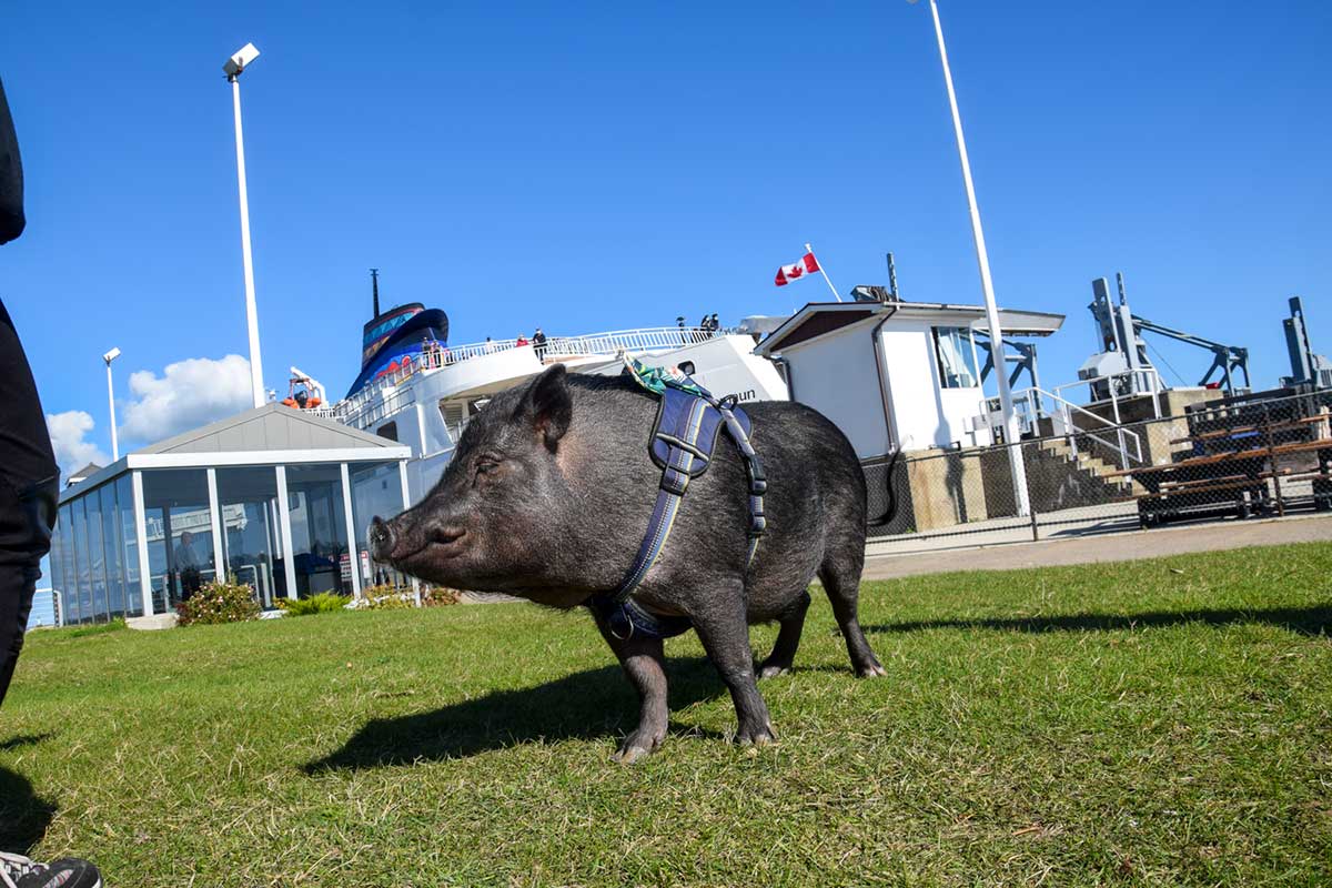 Owen Sound Transportation Company was excited by the prospect of its porcine passenger and shared photos of Walter on its Twitter account.