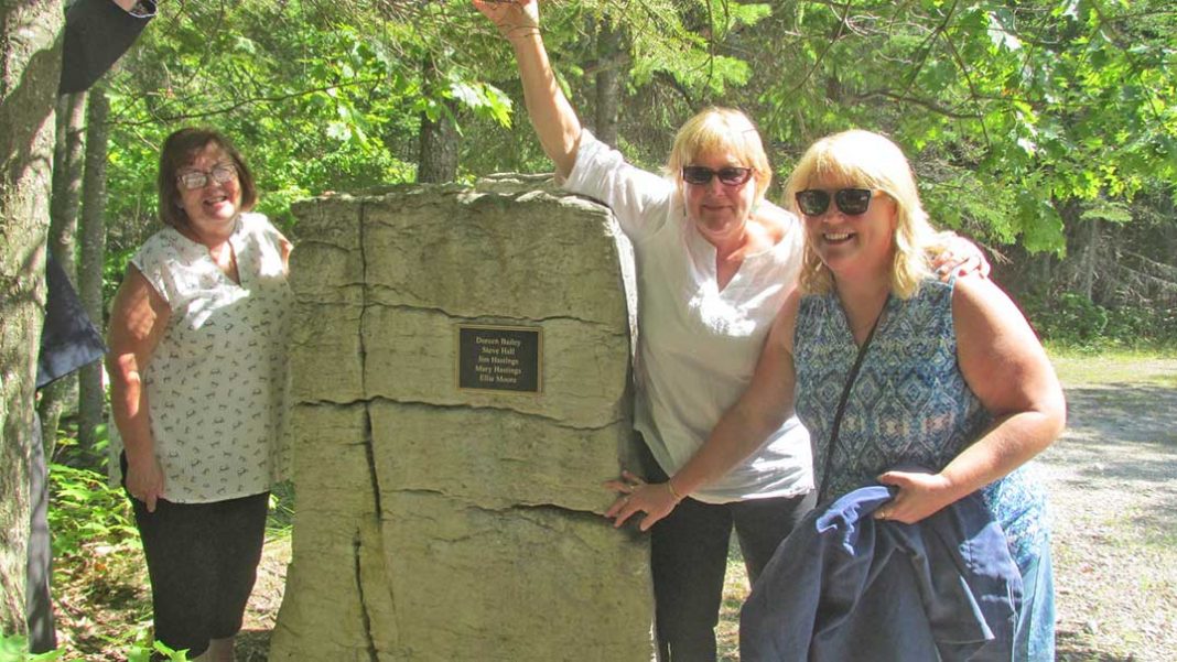 The Friends of Misery Bay (FOMB) honoured the memory of five people who were integral to the development of Misery Bay Provincial Park including Doreen Bailey, Ellie Moore, Jim and Mary Hastings and Steve Hall this past Sunday. From left is Bonnie Bailey, Mindy Kerr and Marilyn Trick.