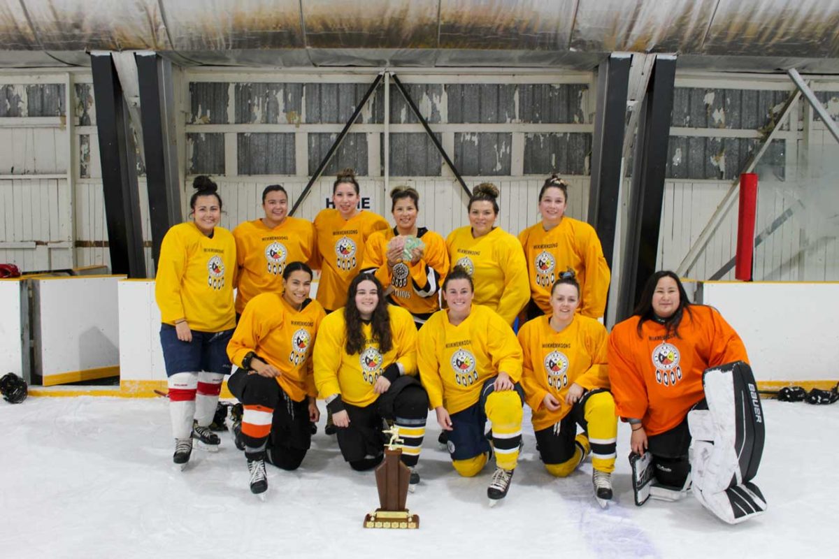 Northern Storm won the ladies’ ‘A’ division championship with a 7-1 win over The Beavers. The winning squad included Ruby Simon Trudeau, Victoria Pitawanakwat, Gerri Lynn Manitowabi, Kennedy Lanktree, Roxxanne Corbiere, Danielle Shawana, Deidre Debassige, Delaney Webkamigad, Victoria Trudeau and Jorja Peltier.