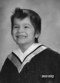 In loving memory of Gavin Neil Michael Otosquaiob who was called by the creator on Saturday, August 24, 2013 at the age of 6. Beloved son of Tyson and Amanda. Dear brother of Tyson Jr., Mya, Chloe, and Arabella. Cherished grandson of Rosalie Eveleigh and Anthony Brake of Newfoundland, Gloria Spanish (predeceased). Loved nephew of Garnet, Vern, Julia, Dorian, Jessica and Amanda. Forever remembered by godparents Tracy and Paul Ruttan of Bracebridge. Will be missed by family, friends, cousins and schoolmates. Family and friends gathered on Tuesday, August 27, 2013 from 7 pm at Knox United Church, Manitowaning. Funeral Service was at 12 pm on Thursday, August 29, 2013 at Knox United Church. Burial at Hilly Grove Cemetery. Arrangements entrusted with Island Funeral Home, Little Current.