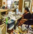 Beside Roman Mann is Oriole Arts Studio and Gallery, a “collaborative” of five women made up of Ann Beam, Lynda James, Nancy McDermid, erin-blythe reddie, and, full disclosure, this writer, working in pottery, photography, paintings, textile art, ‘naturescapes’ and mixed media. Nancy and erin-blythe began creating together two winters ago in the space that was then Fish Point Studio. “Our dream of having our own studio became real when the space became vacant. Our names were on a list of artists who were in line for a vacancy, and in April this year we were notified that we were at the top of the list. We knew then we would say yes.” They started a search for “resonance,” says erin-blythe, “among the spirits of the artists we thought would be harmonious with ours. We wanted to share our dream.”