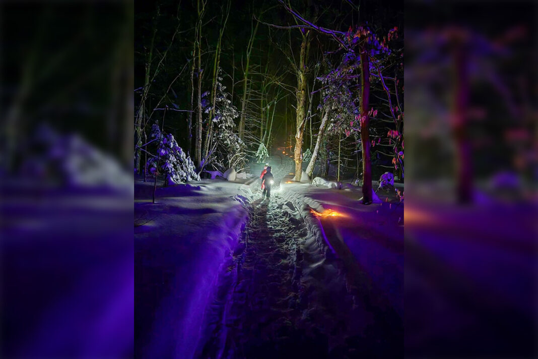 GUIDING LIGHT—Mother Nature provided an idyllic setting for he second annual candlelight walk at McLean’s Park in Assiginack. Snowshoers were invited to walk the trails by candlelight and the event even included ice painting and ice bubble making. For more winter fun photos, please see Page 16.
