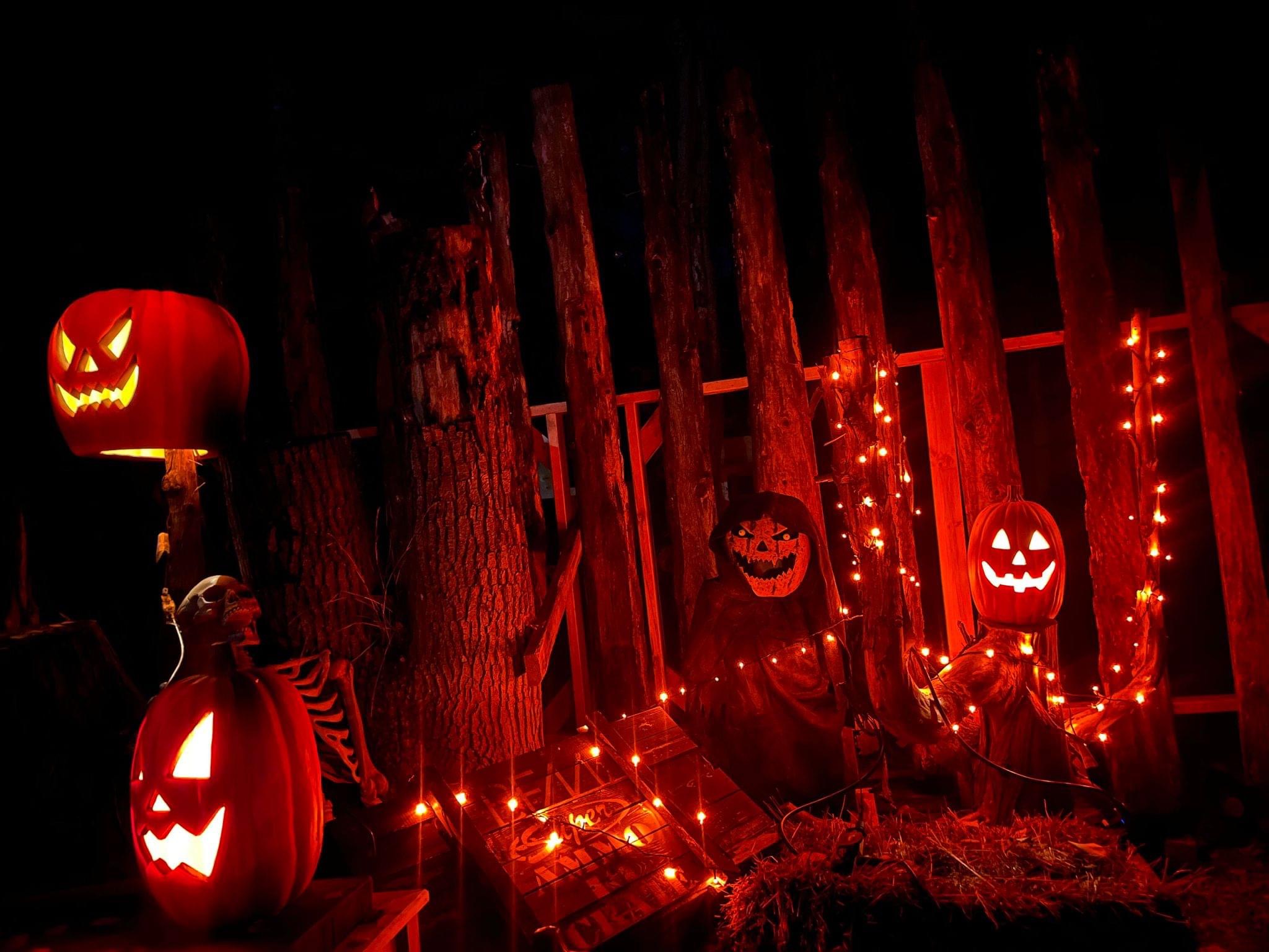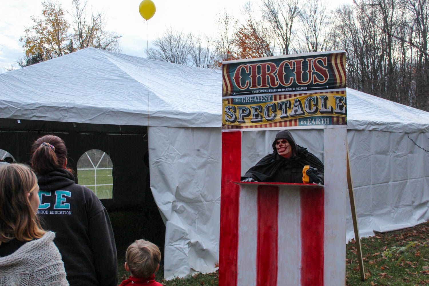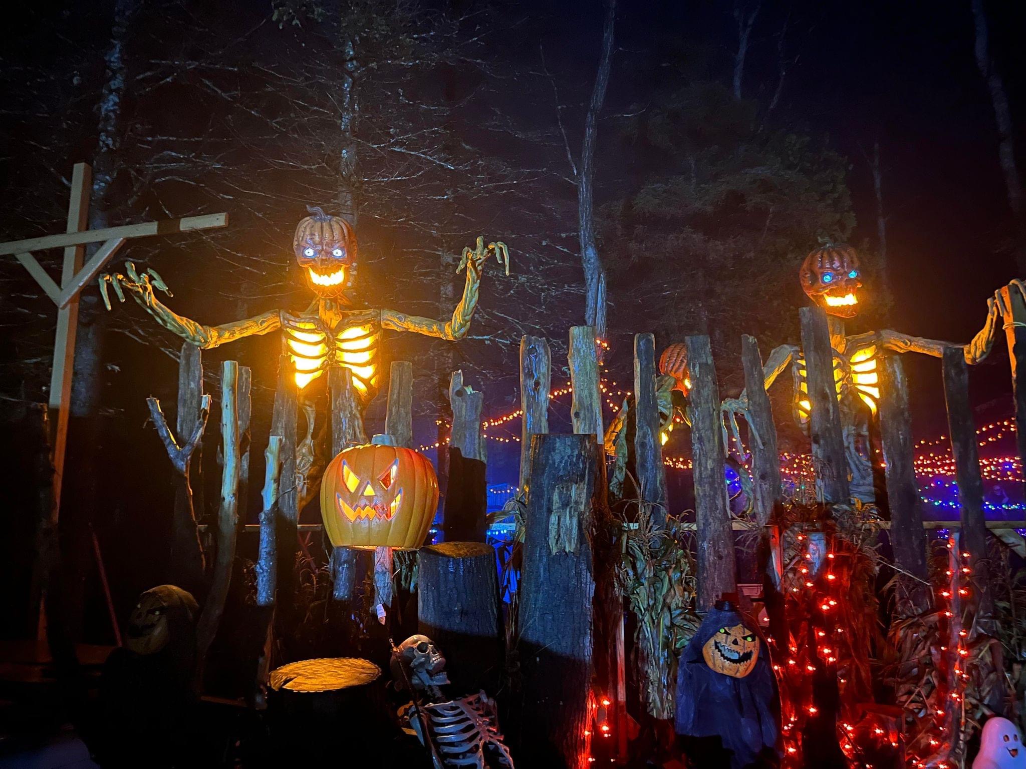 These two creepy clowns hiding behind trees are the real stuff of nightmares. Traveller beware at the Mindemoya Lions Club Haunted Trail.