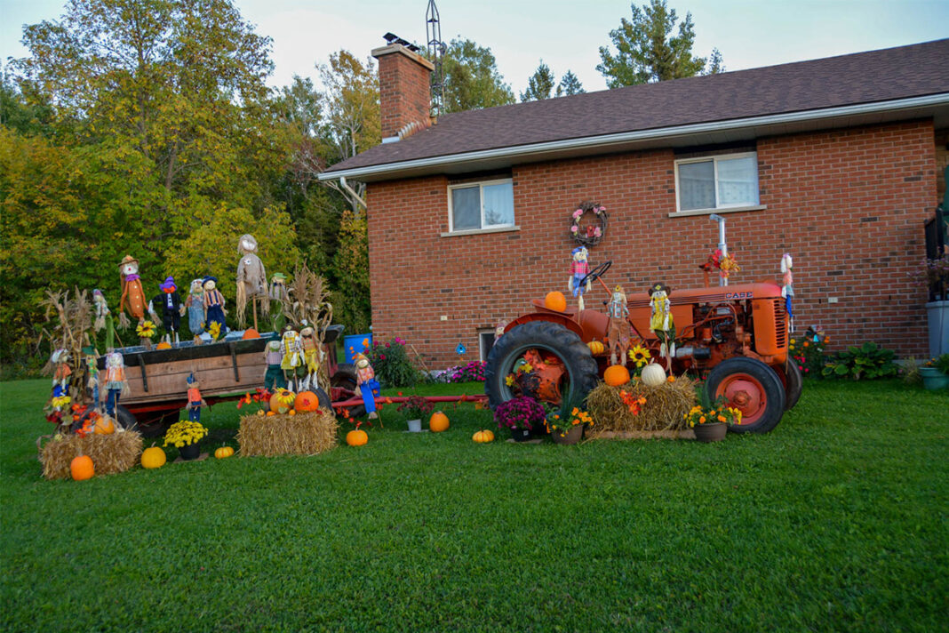 This Harvest Glory Days display festoons the front yard of Rick and Linda Bond’s Highway 540 home in the Honora area. Mr. Bond says that they’ve done the same basic concept every fall for the past three years, “but every year, there’s been a different tractor and a different wagon!” Ms. Bond explains that Rick’s brother has a large supply of tractors for them to borrow so changing the make and model isn’t a problem.