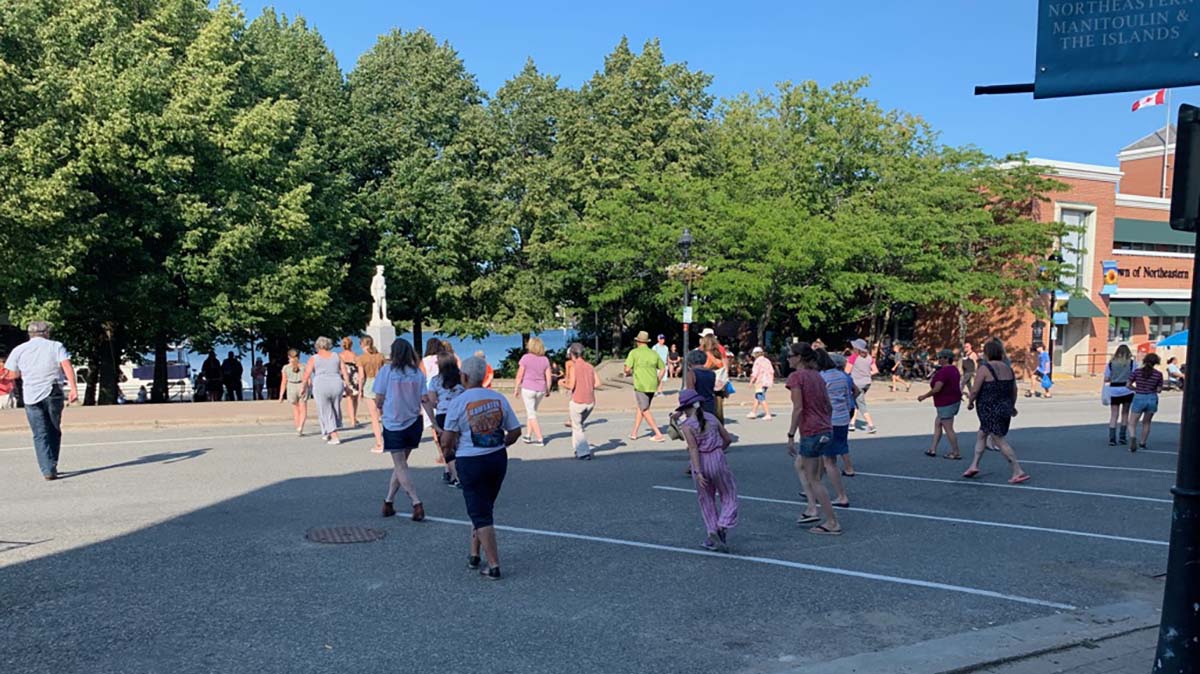 An aerial view of the bridge swinging on Haweater Weekend!Starting the morning off in a good way with Yoga on the Docks.Line dancing drew a number of Haweaters out to the street on Friday.Sydd and Jack (in back) and Avery and Owen show off the family’s 1970 Mustang at the Haweater Classic Car Cruise-In.The Wilkin Family were back in full glory with their annual float. The Expositor was happy to supply the paper maché paper supply.The country vibe was strong during the parade with the number of horses, wagons, tractors and trucks.The Little Current Lions Club and friends greet the crowd during the parade.Yee-haw! Candy for everyone during the Haweater parade.The Wilkin Family and their annual float.Firefighters are fun, especially when you put them in a parade.Ponies are perfect for a Haweater parade.Yee-Haw! Lots of horses and ponies were action during the parade.MP Carol Hughes and a Slovakian ambassador.Island youth had a blast at the lazer tag at the NEMI rec centre.The upstairs in the NEMI rec centre makes a great place to run around and play tag!Clayton makes a mad dash to the next barrel at the Haweater Weekend horse show.United Church Rev. Whitney Bruno had an innovative approach to the ecumenical service on Sunday morning.The cardboard boat race always brings lots of smiles and laughter to Haweater Weekend.Sean Toope and Xavier Coleman won the coveted business category on behalf of Breakaway Sports and Cycle.Kids rocking with Captain Arrgghh of the Thinking Caps.Adults rocking out to the family music of The Thinking Caps.Manitoulin Brewing Company was on hand to host live entertainment and sell adult beverages on Saturday.These ladies made a pit stop for a cool refreshment during a busy Haweater weekend.Elijah and the Backburners were a hit at the Manitoulin Brewing Company beer tent in downtown Little Current.Pynx Productions was spinning the hits on Sunday night.Move aside mom, let me show you how it’s done! Haweater children take over the street with their moves.The street was filled by time Sunday rolled around.Fireworks are always the perfect finish for Haweater weekend.