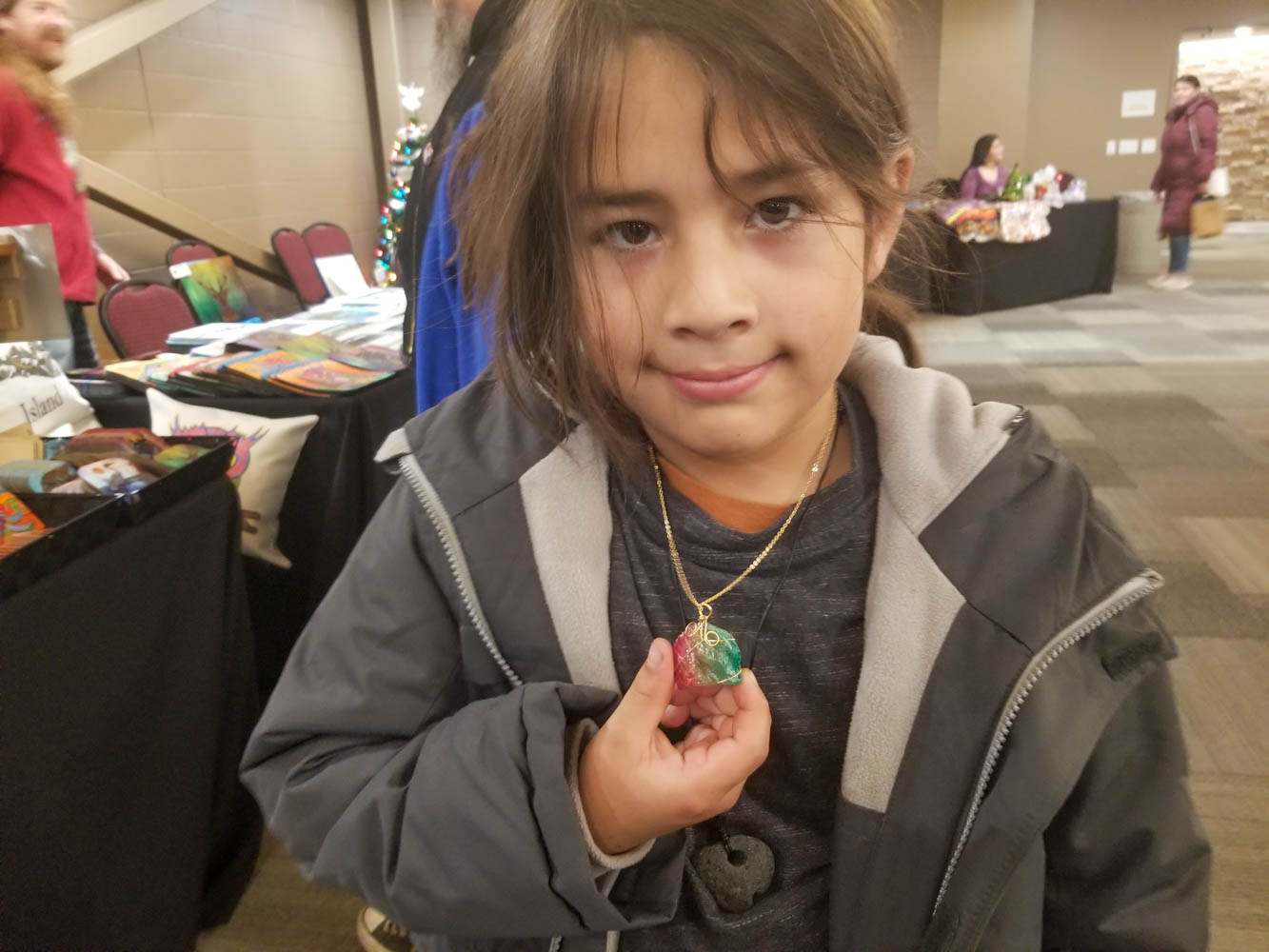 Gryffon sports a new pendant purchased at the Manitoulin Hotel and Conference Centre Christmas market held over the weekend.