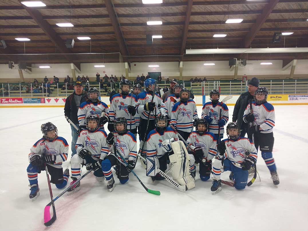 In the end, the Thunder finished second in the Peewee division, winning three and losing two. After all was accounted the Mindemoya Peewees played Legend Boats two times, Espanola Eagles, Wiky Hawks and finally losing to Carmen Construction for the silver.