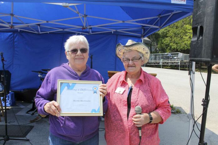 There were 56 competitors in the Sprint Distance Triathlon. Xavi Mara (16) of Manitowaning finished 8th overall and second in the U18 age category with a time of 1:34:03. Ben Quackenbush finished 10th overall with a time of 1:36:58. Ben’s son Isaac Quackenbush (14) finished just 23 seconds behind his father at 1:37:21. He was 11th overall and 3rd in the U18 division. Dad laments proudly that this may have been the last time he beats him in any race! Little Current’s Bill Slaght had a great race and finished very well despite having to deal with a flat tire on the mountain bike!