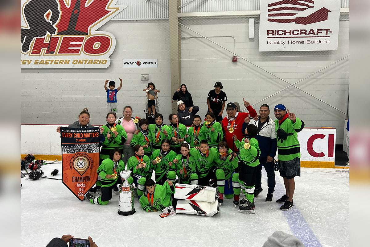 There were a lot of Manitoulin people in the Ottawa/Gatineau region for the Every Child Matters hockey and broomball gathering a couple of weeks ago. The U-11 Wolf Pack won gold in their overtime win! Congratulations to players: Treilyn Gonawabi, Jake Mark-Stewart, Tauno Saikkonen, Tavin Shawana, Ty Neshkiwe, Zayden McGregor, Connor Pheasant, Bristol Recollet, Jace Gonawabi, Hudson Gray, Jacen Simon, Bray Wassegijig, Taisto Saikkonen, and Camden Goulais. Hats off to their staff: Coach, Ruby Trudeau, Trainer/Asst Coach, Jay Shawana, Manager Dawn Wemigwans and assistant coaches Shannon Gonawabi and Ralph Gonawabi.