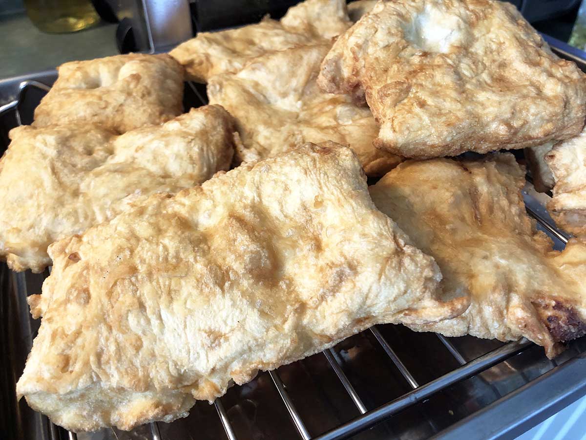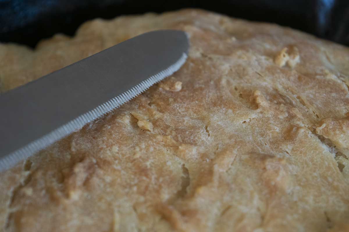 The bannock came next in its handy pre-mixed bag. Just add lukewarm water and some love—the most important ingredient, according to Chef Cezin—and a sticky dough was ready in seconds, to be placed in an oiled cast iron skillet.
