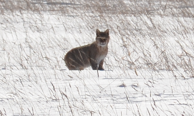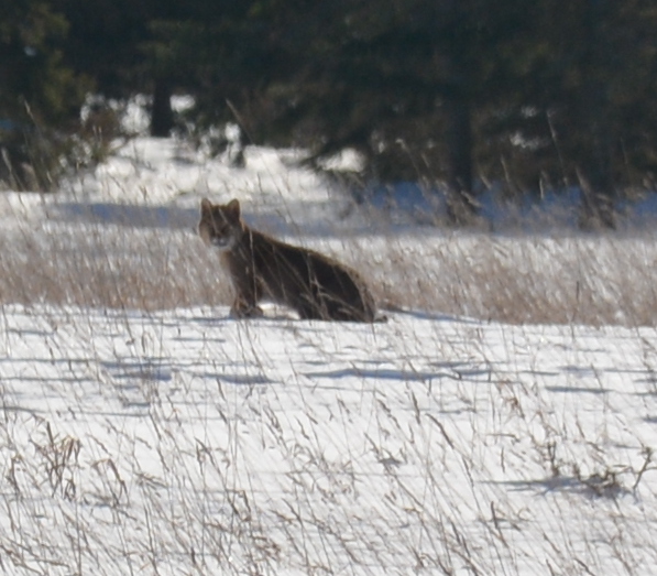 These photos of an obvious feline were snapped by Jim King-Seguin on February 15 just off of the Silver Lake Road near Sheshegwaning. Mr. King-Seguin explained to this newspaper that the cat was approximately 1/2 kilometre away from the roadway at the time the photos were taken. The Expositor quickly sent them off to the Ministry of Natural Resources and Forestry (MNRF) and was advised that ministry biologists believed the photos to be of a bobcat. Mr. King-Seguin is not so sure and we decided to ask you, our readers, to weigh in. What do you think? Click here to take a poll and have your say? Cougar? Bobcat? Lynx?