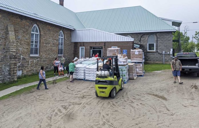 LITTLE CURRENT – A hardy group of Island social workers stepped away from their computer keyboards and left their telephones behind to join their colleagues at the Little Current United Church Hall to slug some 42,000 pounds of rescued food and hygienic supplies into trucks for distribution to 16 Indigenous and non-Indigenous communities across Manitoulin.