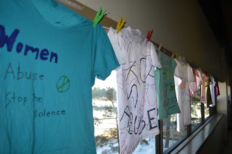 Throughout the day, individuals could also participate in the Clothesline Project—a vehicle for women affected by violence to express their emotions by decorating a shirt, which they then hang on a clothesline to be viewed by others as testimony to the problem of violence against women.