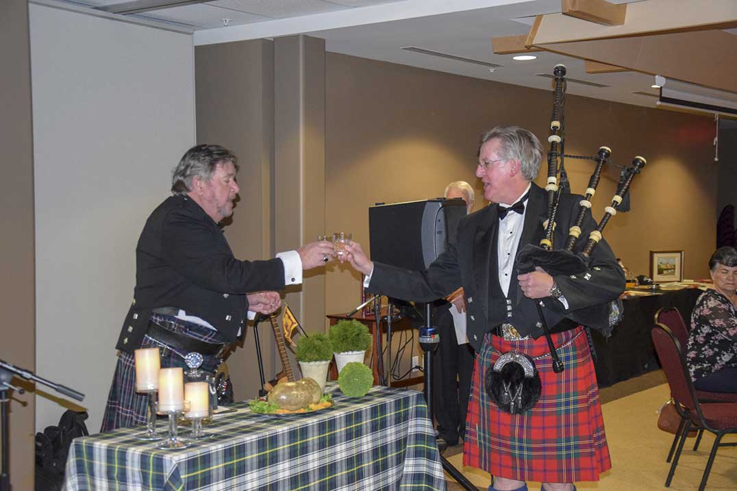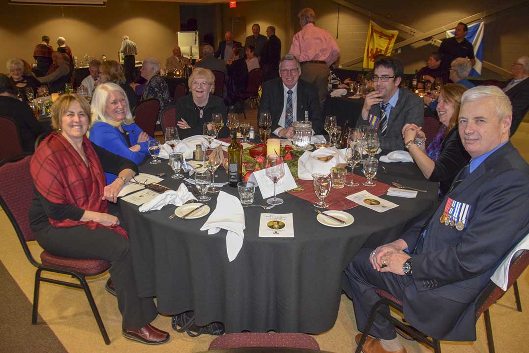 The itinerary for this year’s event followed a by now familiar routine, with the piping in of that most peculiar of Scottish delicacies, the haggis—followed soon after introductions of the head table by the recitation of the Burn’s poem ‘Address to a Haggis.’ As has been the case in recent years, the address was delivered in fine Scottish brogue by the incomparable Bernard Andrews, who acted as master of ceremonies for the evening festivities. Pastor Erwin Thompson delivered the traditional ‘Selkirk Grace’ before everyone settled into a dinner of the aforementioned haggis, cock-a-leekie soup (potato leek), tatties and neeps, rolls, roast beef with gravy and a host of delicious cakes and beverages.