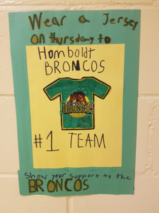 Our Northeastern Manitoulin Island Family Health Team is participating and showing support to the families of the Bronco’s. This is how something small can have a large impact. Photo supplied by: Judy Miller