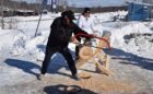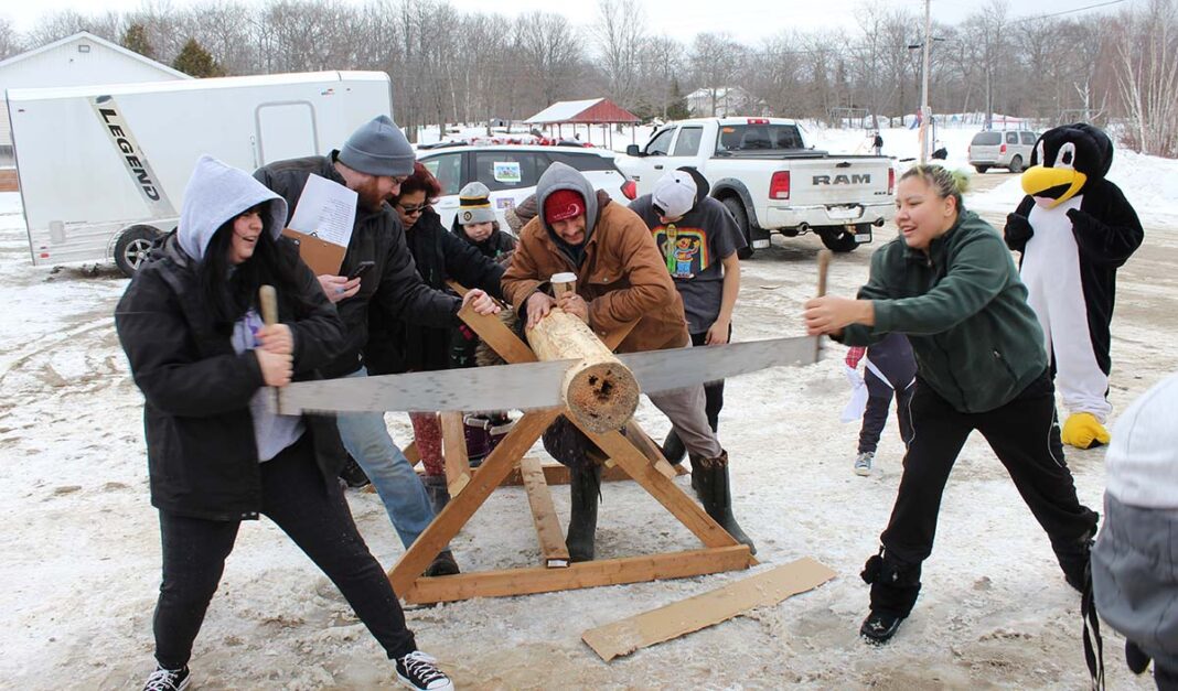 A log sawing competition was only one of the many fun activities held as part of the Zhiibaahaasing First Nation annual winter carnival.