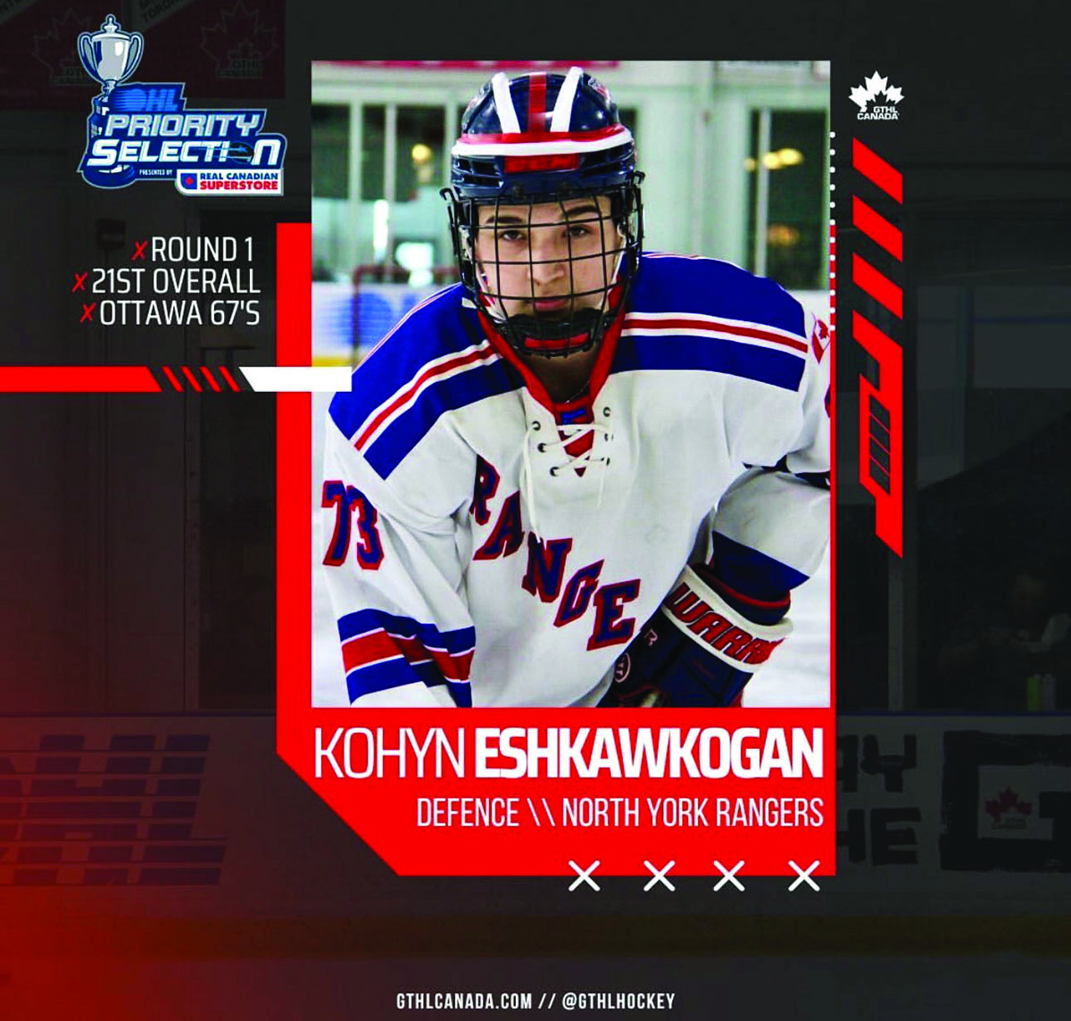 Along with the upcoming Ottawa 67’s development camp, Kohyn will go for gold at the National Aboriginal Hockey Championships in Grand Prairie from May 6-11. “After that, it’s all about finishing off the school year with good grades and ramping up for another summer of training at Gary Roberts performance camp to make an impact in Ottawa at the 67’s main camp in August,” said Mr. Eshkawkogan. “As his family, we look forward to the front row seat we have to watch whatever he chooses to do next.”
