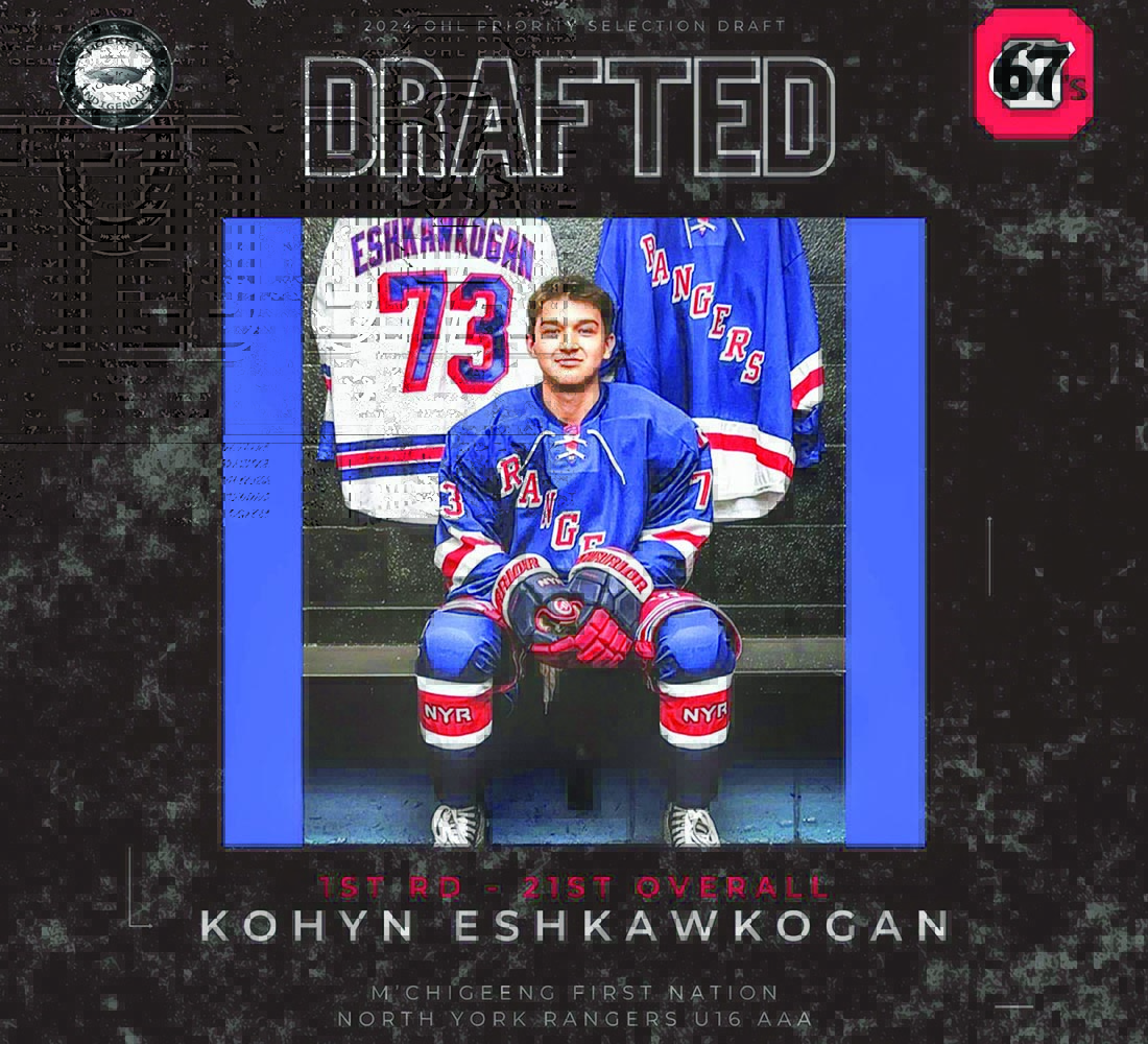 MANITOULIN—Kohyn Eshkawkogan can check off one of his long-term goals after he was drafted in the 2024 Ontario Hockey League Priority Selection Draft Friday night.