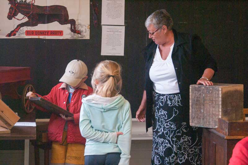 Inside the Little Schoolhouse, former museum Chair and retired schoolteacher Jane Deyell talked about the history of the school and what it was like to teach and learn in a one room schoolhouse.