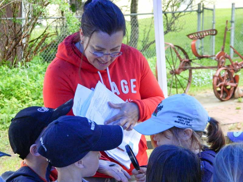 Outside the museum, Sue (the “bug lady”) from Manitoulin Streams had set up under a canopy for an interactive presentation on aquatic bugs and invasive species. Students crowded around her display, looking at invasive species in jars, and more beneficial insects in small plastic tubs, asking questions all at once.