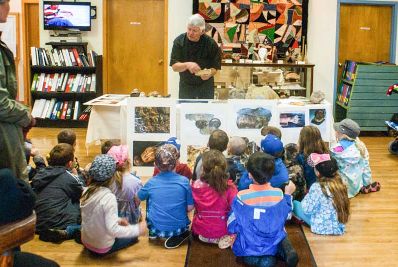 Back at the museum, Bill Caesar shared his knowledge of fossils with the different groups and brought some samples for a hands-on experience. Mr. Caesar was able to translate his notable enthusiasm for fossils into an engaging presentation. His favourite appeared to be a cephalopod, which looked similar to a squid. He held up a model made for him “many years ago” by a student of his. “It looks like a carrot,” one child said.