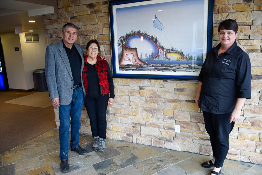 LITTLE CURRENT—James A. Simon Mishibinijima (Animikii Waabishkaa) is an internationally acclaimed Anishinaabe artist whose works adorn the walls of such eminent locations as the Vatican (two works) and New York’s Rockefeller Centre. Last month, Mr. Mishibinijima gifted one of his works to the Manitoulin Hotel and Conference Centre in Little Current.