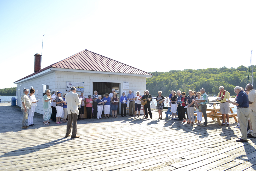 The service started with the Blessing of the Boats on the Kagawong docks by officiate Rev. George Gaiser, followed by the singing of ‘He’s Got the Whole World’ led by Doug Alkenbrack on guitar.