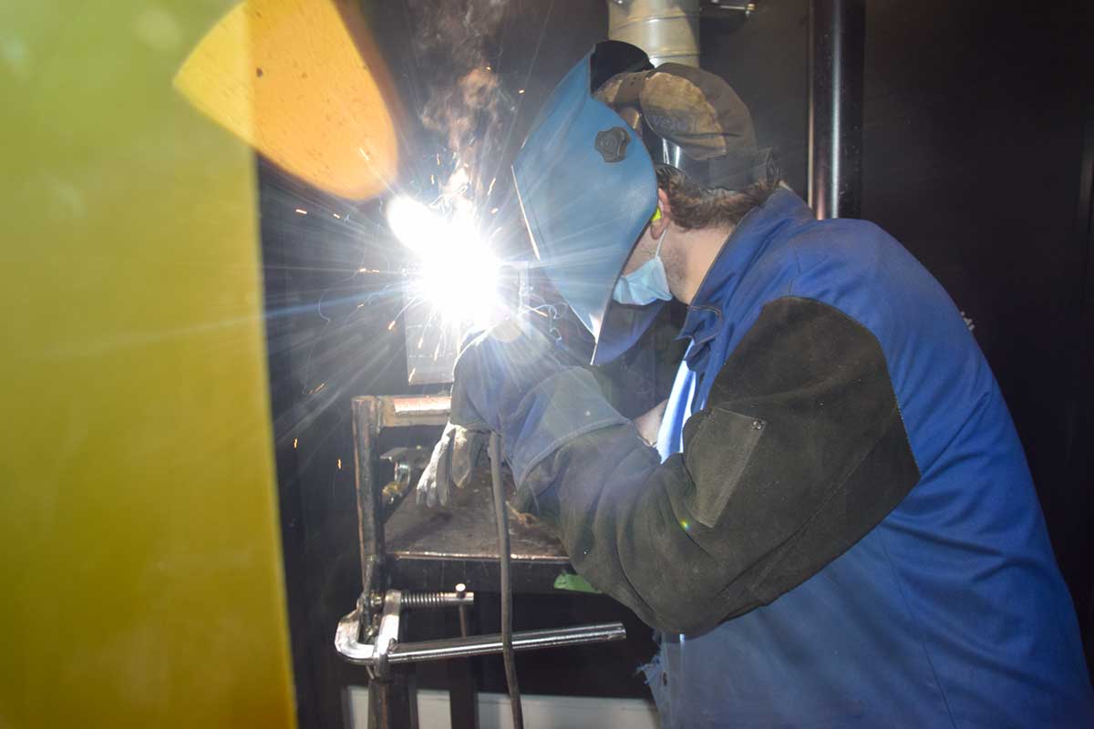 Five current and former students of the school’s welding course were busy burning, grinding and (MIG) welding on steel test plates under the watchful eye of instructor Dave Barnes and J“The students are doing their all-position, shielded metal arc welding certificate,” explained Mr. Barnes. “They start flat, then horizontal, vertical up and then overhead.”
