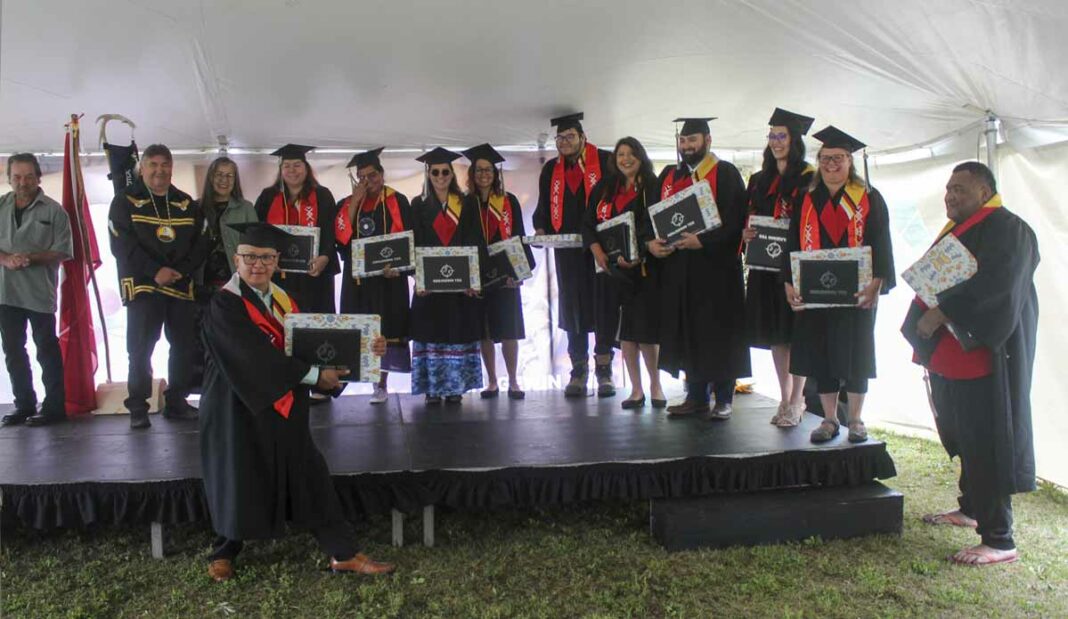 M’CHIGEENG—On June 27, the hard work and perseverance of students from all walks of life was celebrated at Kenjgewin Teg’s annual graduation ceremonies. Thirty-six graduates crossed the stage that morning following an opening ceremony by Elder Gloria Oshkabewisens-McGregor, Kenjgewin Teg knowledge holder.