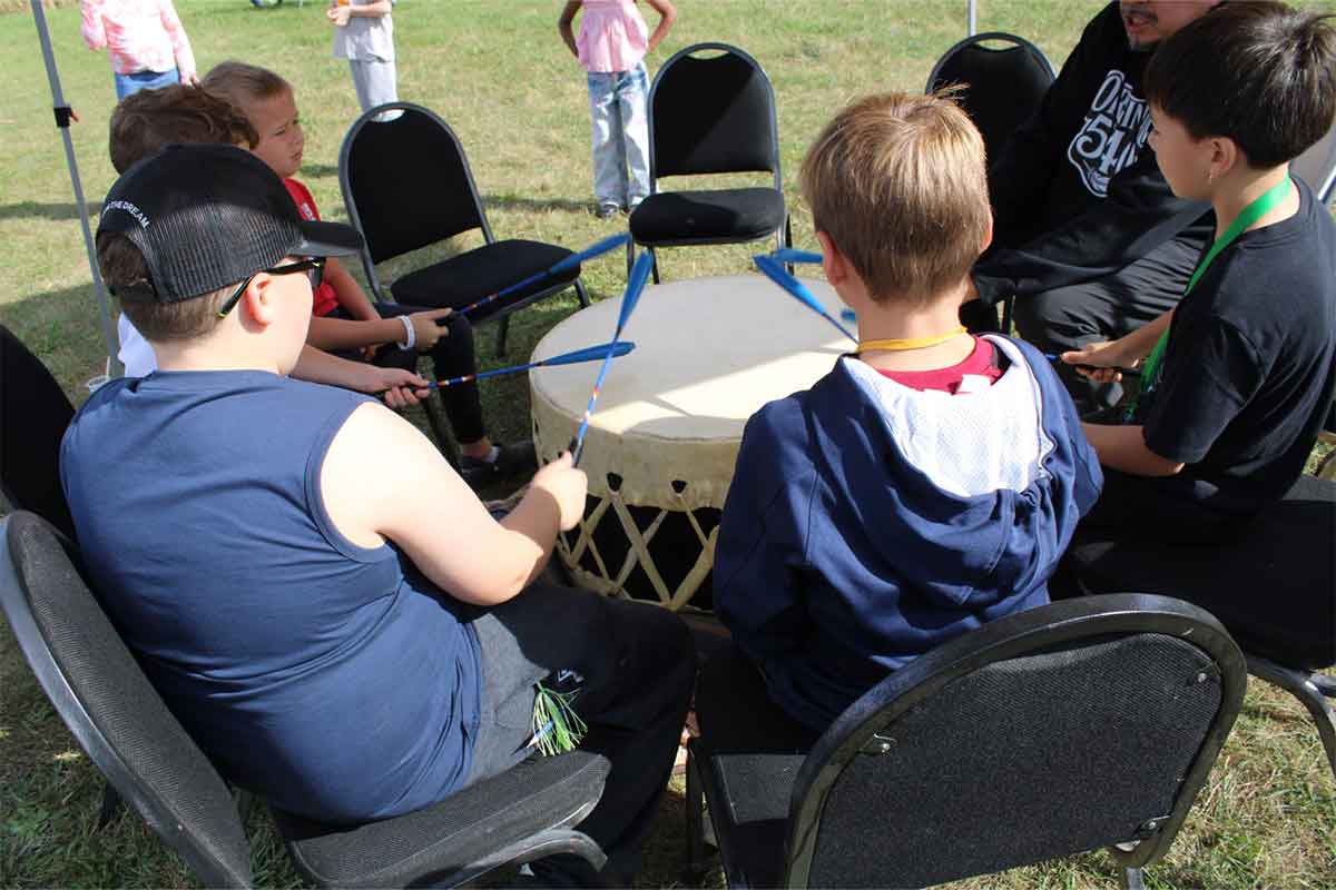 There were many crafts for the younger children as well. Bracelet making was popular as was creating nature bookmarks at the UCCMM Youth Reintegration Team’s booth, using local plants and natural materials. Botanical printing was another booth that attracted much attention. Sarah Earley, with the help of Scott Miller instructed bus loads of kids on how to create beautiful works of art through nature. Cheyanne Pitawanakwat was instructing students on how to transform natural materials, like those of her tanned fish skins, into beautiful usable art, all while exploring cultural teachings.