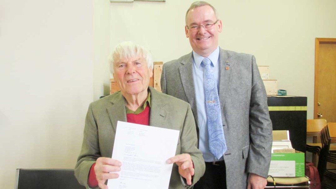 Mr. Addison read a letter from Aime J. Dimatteo, director general of FedNor, to Mayor Hunt. It stated, “on behalf of the government of Canada and everyone at FedNor, I am pleased to extend to you our best wishes as you celebrate your 90th birthday-an impressive milestone by any standard.”