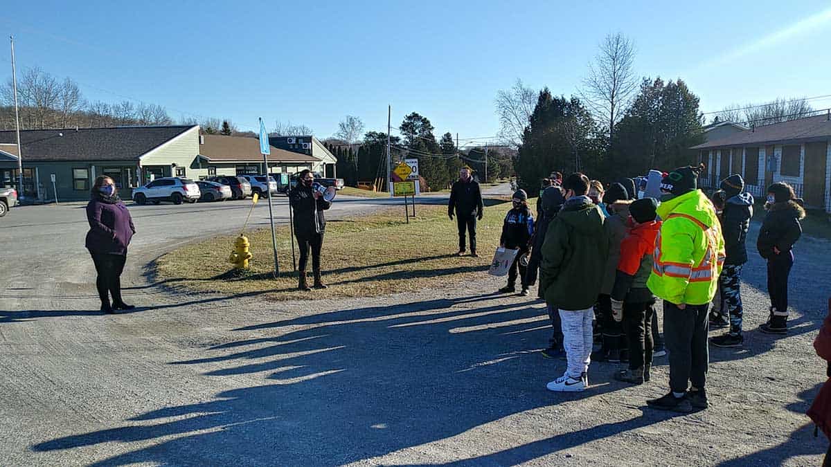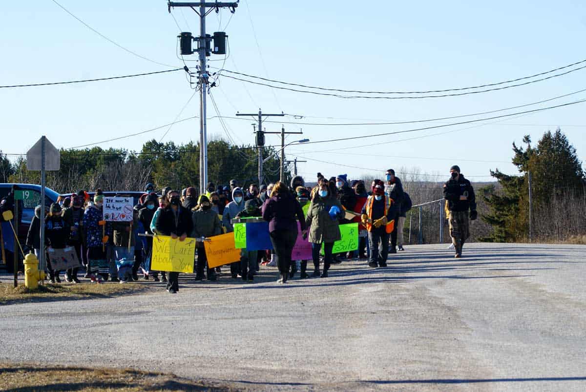The December 2 walkers gathered at Lakeview School at 2 pm. Following words from Ogimaa Debassige, Tim Ominika spoke. “It’s very important to be here and to be a part of this,” he said. “We’re all doing this because of you. We’re all doing this to raise awareness and everybody has to come together to address these issues. Nobody’s alone while we are doing this. We want to make sure all of us are supported and by having your ogimaa here as leader of your community, it shows how much support all of you have. I’m very grateful to be here and to be a part of this. Nobody is left alone,” he said.