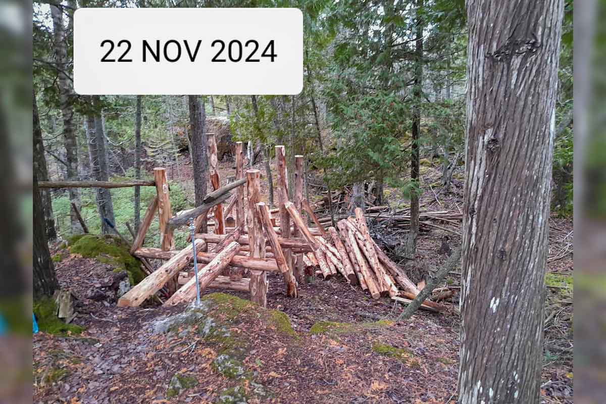 After totally ignoring offers of expert support for the re-construction of the Bowerman Trail in South Baymouth, the administrator instructed someone to start building something. They did. See picture immediate right.Eight months later it’s all dismantled. See picture far right.