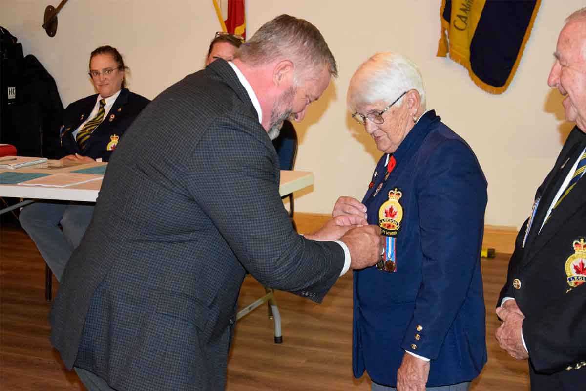 “How many times do you see Linda at the Cenotaph, cleaning up,” he said. “What you don’t see is out at the Island Cenotaph. Hours and days spent making sure that it is kept clean in respect for the veterans, the 129 veterans who are on the main one, the women and the Merchant Marine.”
