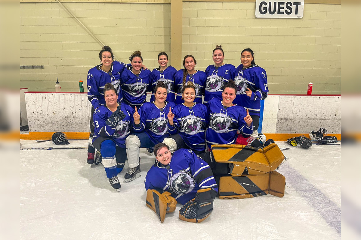 The Wolverines took the women’s Winterfest title on Sunday. The champions are, back row, from left, Shanna Landry, Shania White, Nyssa Solomon, Delani Trudeau, Delaney Webkamigad, Angela Green, front row, Danielle Shawana, Savannah Corbiere, Lyric Pitawanakwat-Peltier, Amber Lewis and Kristen Meilleur.