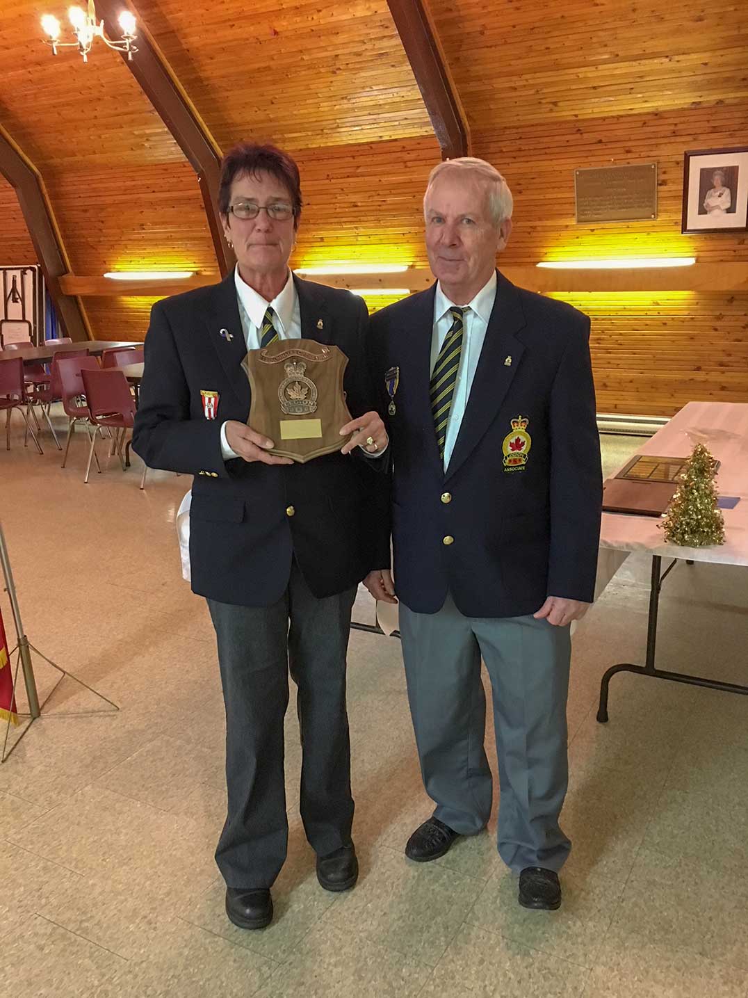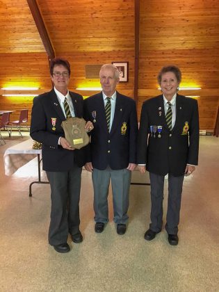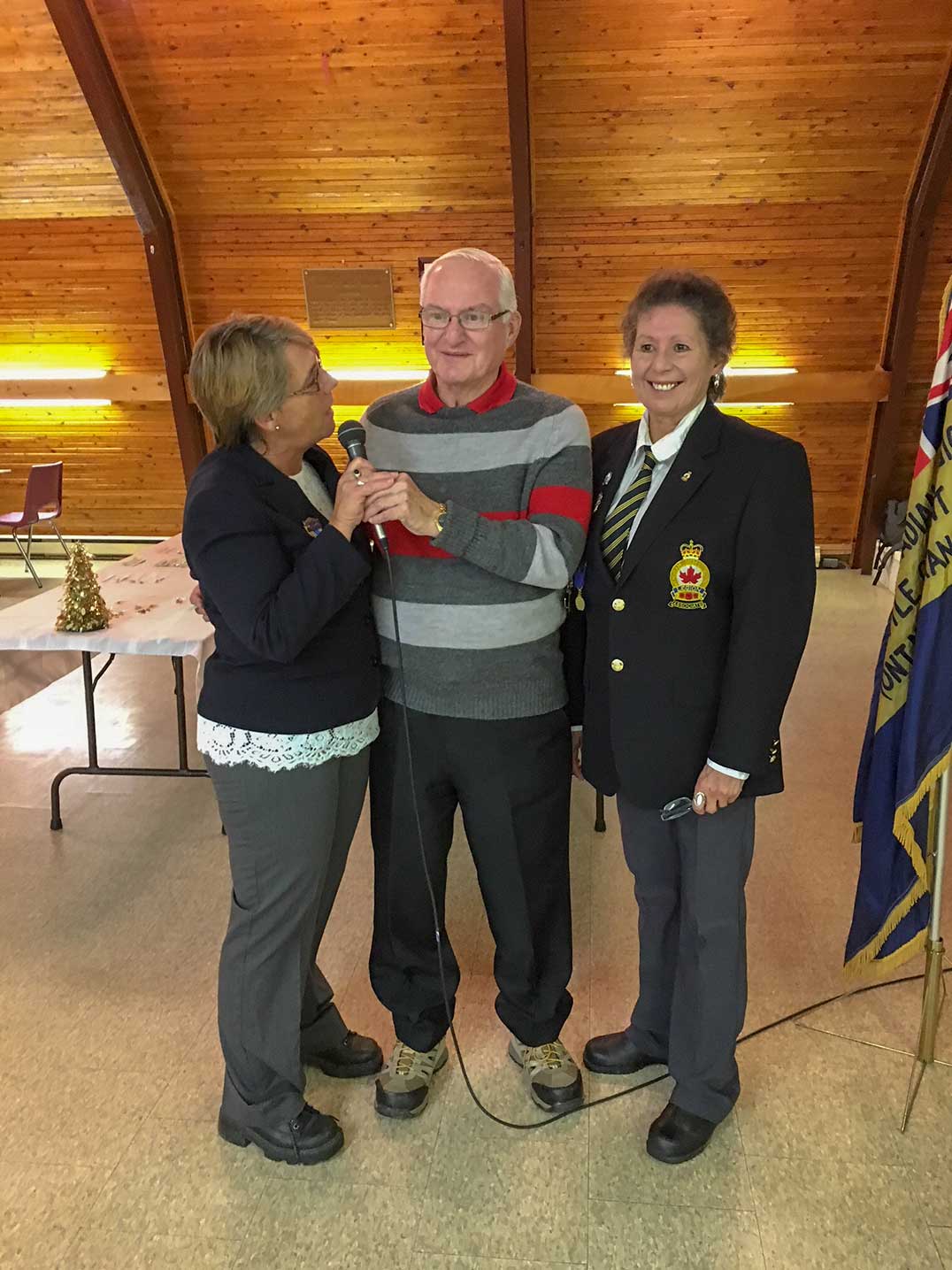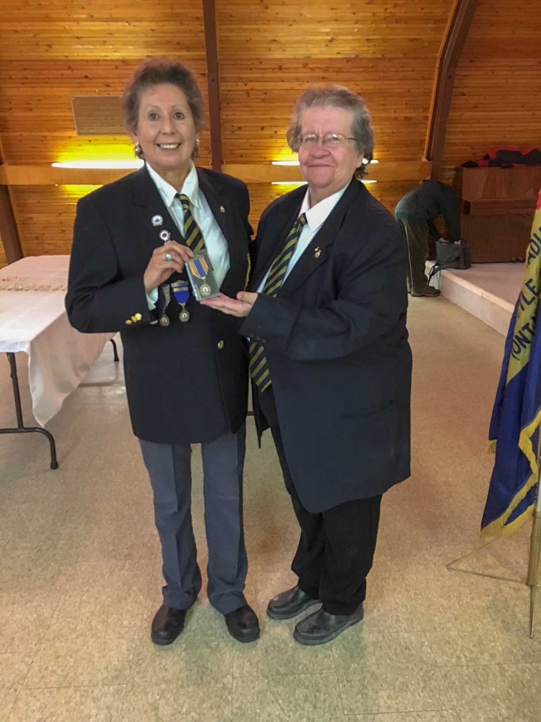 Past officers’ medals and bars were presented to President Ruth Eadie (2nd V.P.’s bar); Paul Abbot (Service Officer’s Bar); Dianne Musgrove (past officer medal and chaplain’s bar); Norris Valiquette (past officer medal and executive committee bar); Catherine Morrison (past officer’s medal and secretary bar); and Gord Keatley (past officer’s medal and treasurer’s bar).